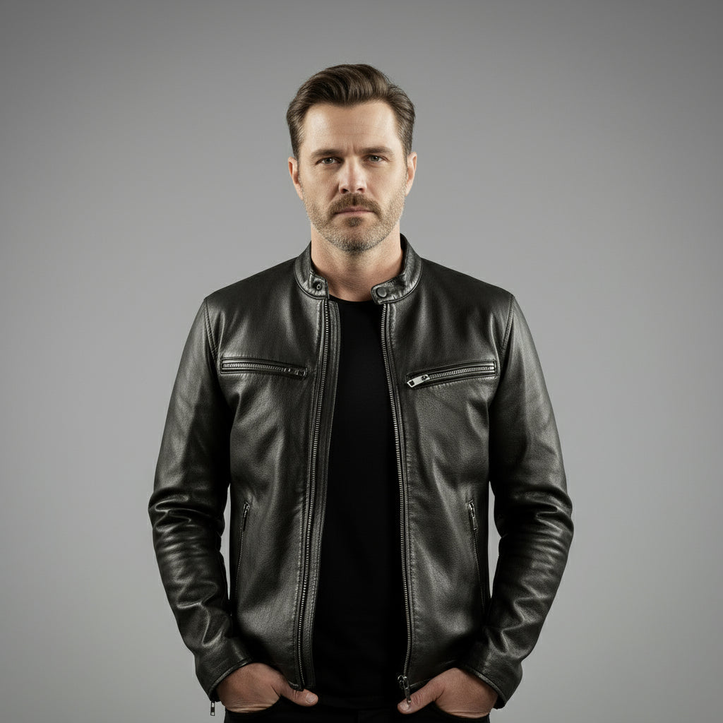 • Corte: Slim fit con cuello estilo motero